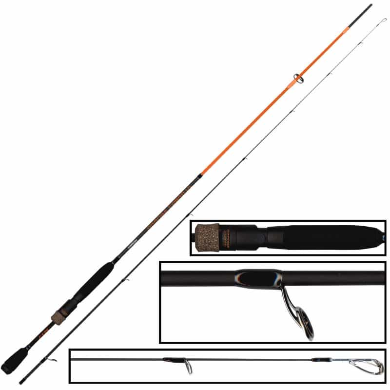 Die Tubertini Cobra Orange Spoonrute – Die Ultra Light Rute von Tubertini besitzt eine Länge von 2,10m und sie lässt sich sehr gut zum leichten Spinnfischen auf Forellen mit Spoons, Wobblern und anderen kleinen Forellenködern einsetzen. Die Forellenrute besitzt sehr gute Wurfeigenschaften und sie federt die Fluchten von kampfstarken Forellen im Drill sehr gut ab.