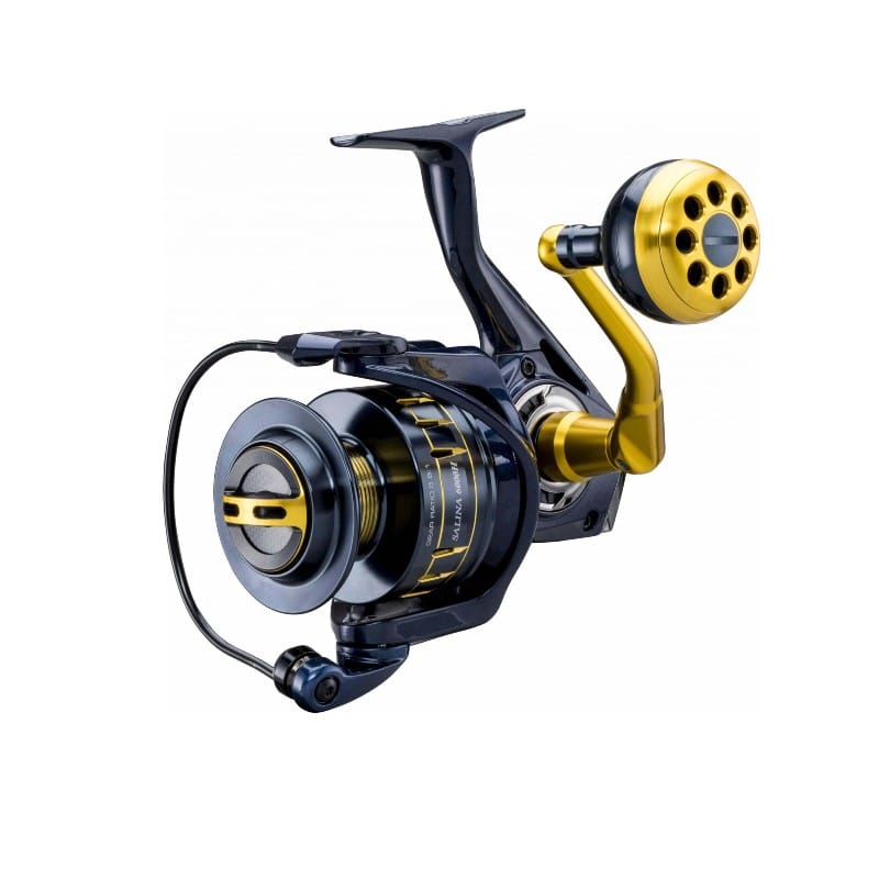 Die Salina Salzwasser-Spinnrolle ist aus einer LITECAST-Magnesiumlegierung gefertigt und bietet die Festigkeit und Steifigkeit von Aluminium, ist aber 15 % leichter. Aufbauend auf diesem Fundament aus Kraft bietet die Salina ein Dual Force Drag System mit einer maximalen Bremskraft von 20 kg. Im Drill mit starken Fischen sorgt die 3-Point Pinion Gear Stabilization für eine präzise Ausrichtung des Getriebes, selbst bei hoher Belastung.