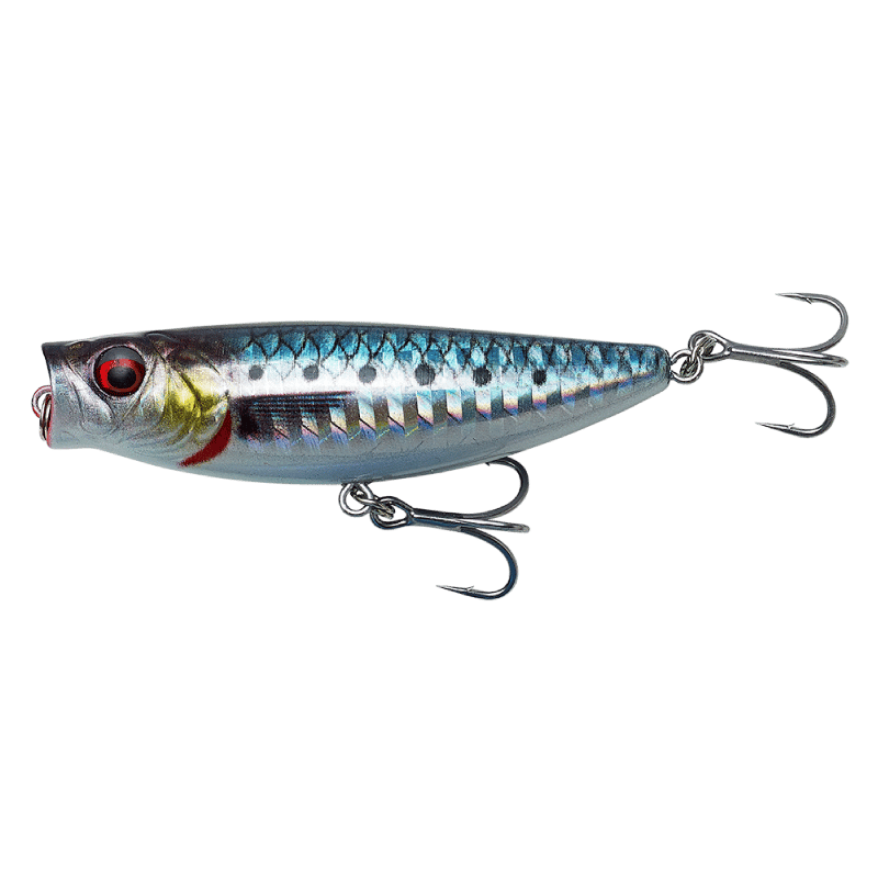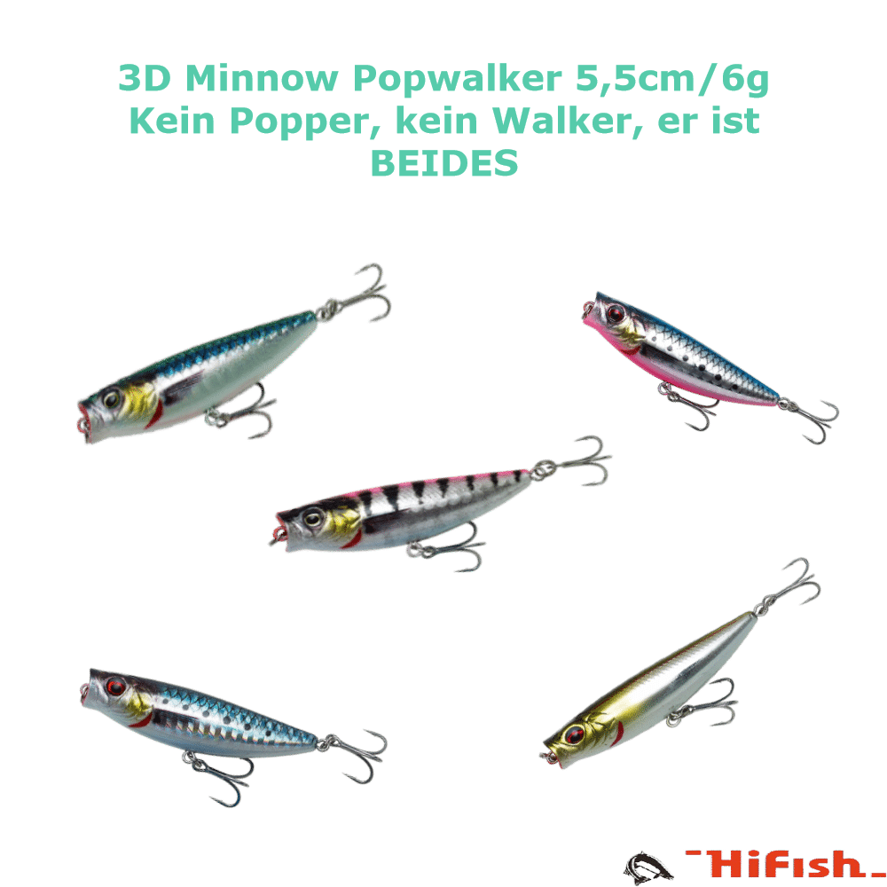 Basiert auf dem 3D Scan einer Baby Sardine. Der Köder ist kein Popper, kein Walker, er ist beides! Der perfekte “Hybride” aus Popper und Walk the Dog-Köder. Der Pop Walker kann mit perfekter WTD-Aktion geführt werden oder er kann poppen, wenn der Angler ihn einfach mit gesenkter Rutenspitze führt! Mit leicht angehobener Rutenspitze “walked” der Pop Walker mit poppender und spritzender Aktion. Ein toller Light Game-Topwater-Köder mit super Weitwurffähigkeit – und für alle Species!